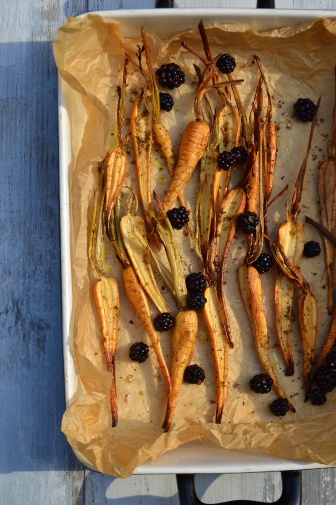 Słodki i lekko ziemisty pasternak, świetnie się komponuje z owocami o kwaskowym smaku. Upieczony z przyprawami, takimi jak tymianek czy oregano nabiera głębokiego smaku. Ja postanowiłem, że wymieszam warzywo z oliwą i zatarem.