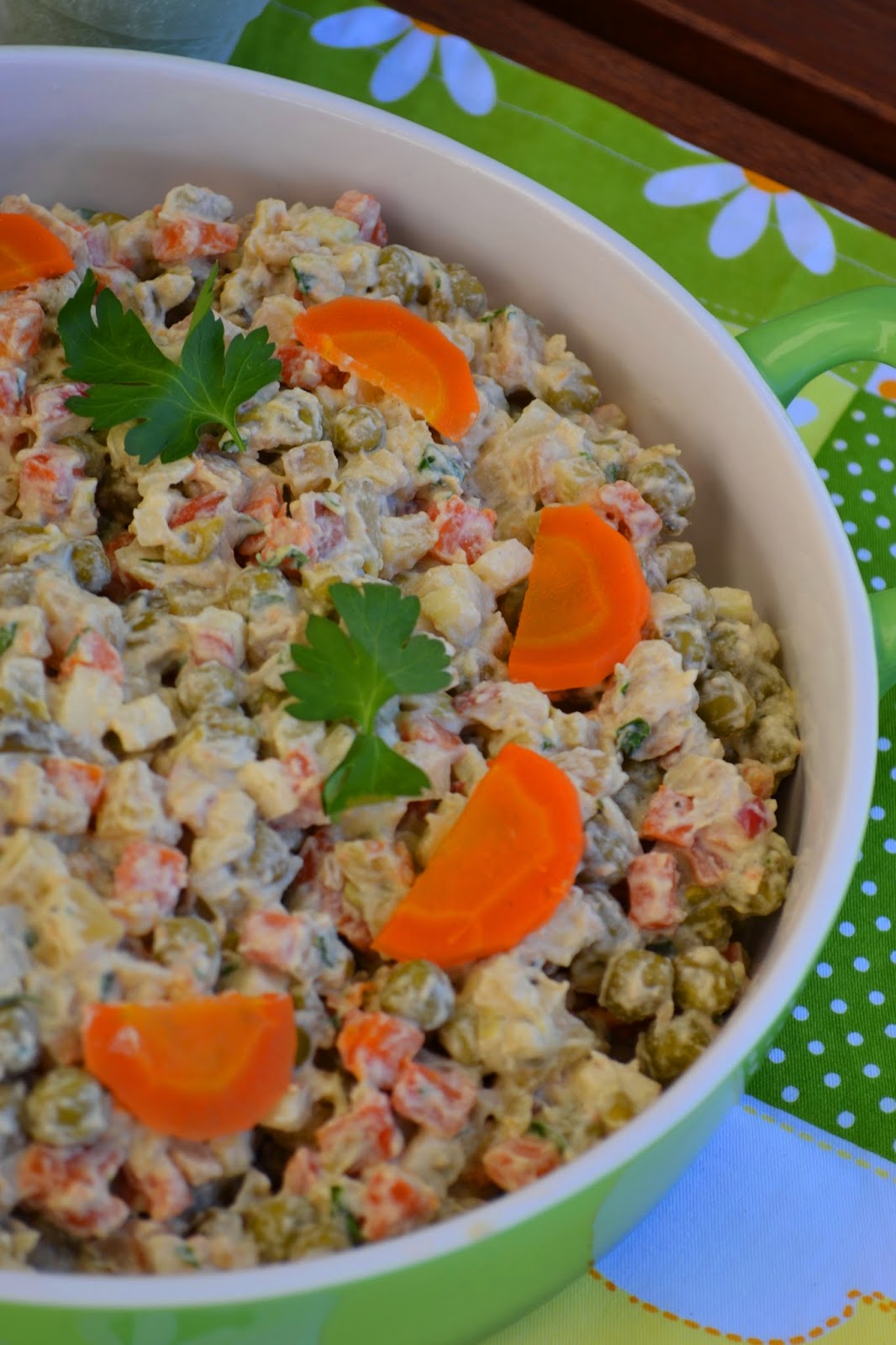 Sałatka jarzynowa jest dobra na każdą okazję :) Gotując rosół dodajecie do niego trochę więcej warzyw i po ugotowaniu będą jak znalazł na sałatkę. Trzeba co prawda przyznać, że ze względu na majonez nie należy ona do najbardziej dietetycznych sałatek -...