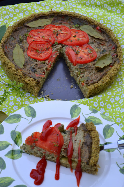 Kilka tygodni temu zrobiłem pierwszą tarte bez spodu z ciasta kruchego. To był strzał w dziesiątkę. W zasadzie zmieniam teraz dodatki spodu. Ciasto kruche różnie wychodzi. Jest z mąki (często białej) i tłuszczu. Spokojnie można te składniki pominąć.Tym razem spód wykonałem z kaszy jaglanej, pęczaku i zielonej soczewicy z dodatkiem kopru i liści selera. Aromatyczny dodatek to gałka muszkatołowa, majeranek i oregano. Konsystencja masy jest na tyle gęsta, że bez problemu można z niej formować spód.