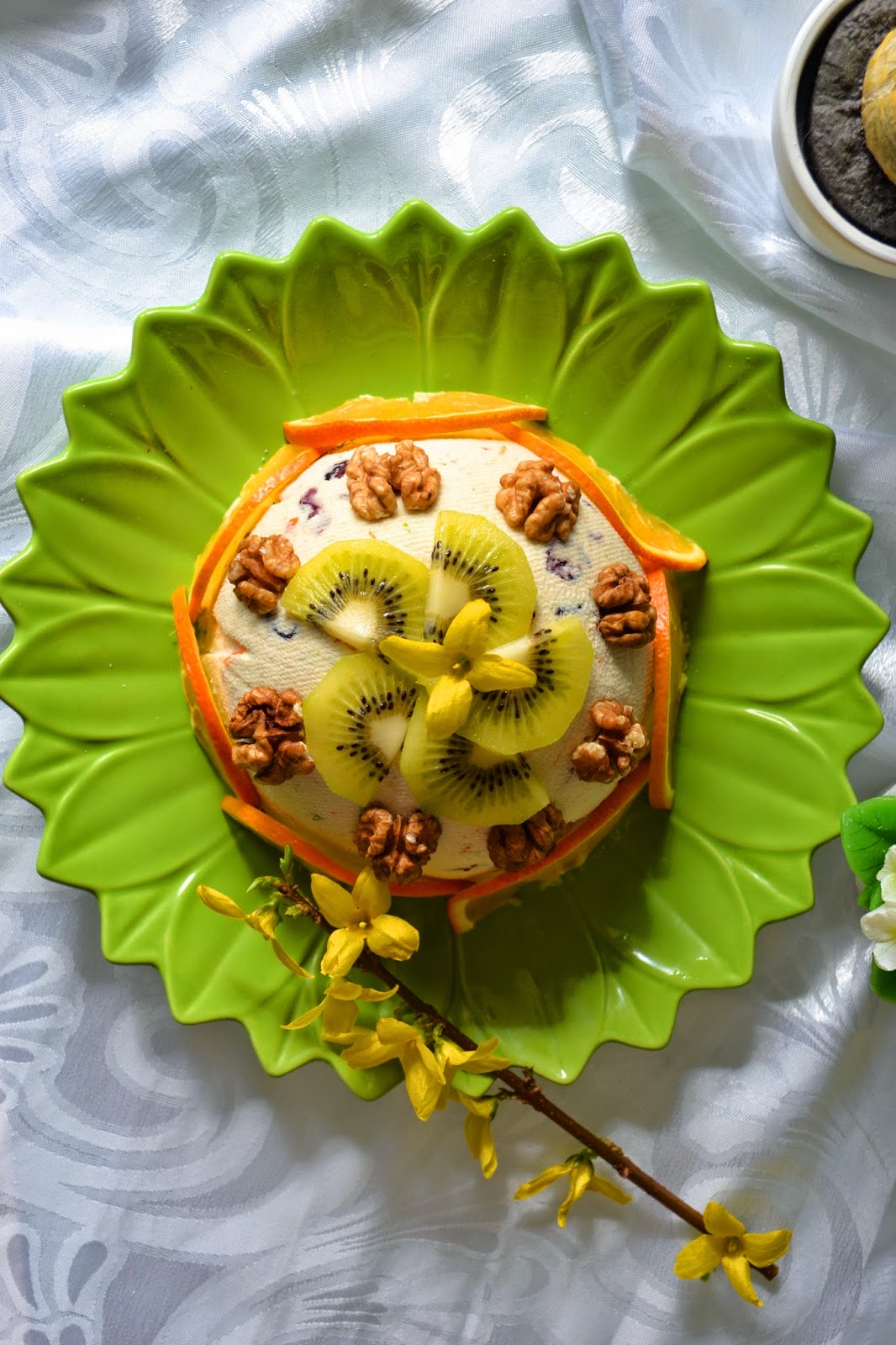 - paschę przyozdabiamy pomarańczami, kiwi i orzechami włoskimi lub innymi dodatkami