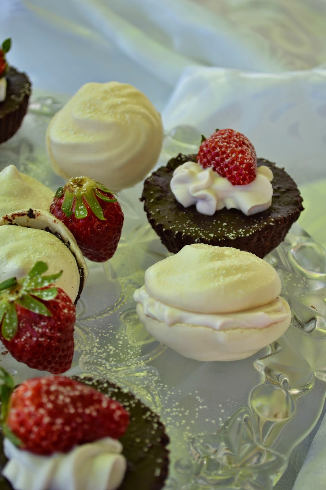 WEGAŃSKIE BEZY Z KREMEM CZEKOLADOWYM I RÓŻANYM
