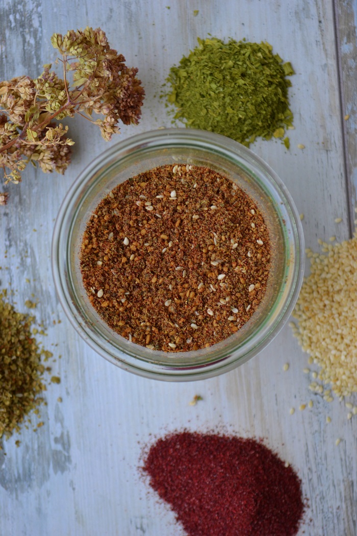 - 2 łyżki sumaku- 2 łyżeczki suszonego oregano- 2 łyżeczki suszonego majeranku- 3 łyżeczki suszonego tymianku- 3 łyżki sezamu- łyżeczka soliWYKONANIE: