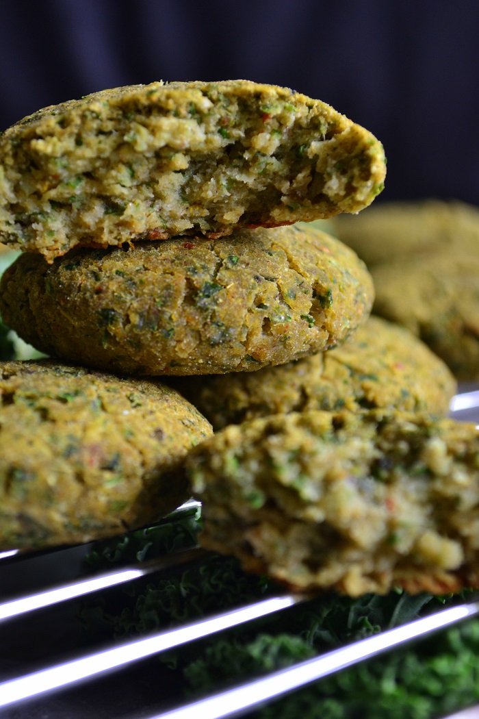 W tych medalionach połączyłem moje ulubione składniki. Zielony jarmuż, słodka ciecierzyca i surowy kalafior. Do tego aromatyczne przyprawy dla wzbogacenia smaku.