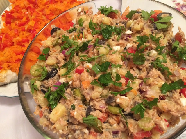 Sałatka warzywna z tuńczykiem i pieczarkami