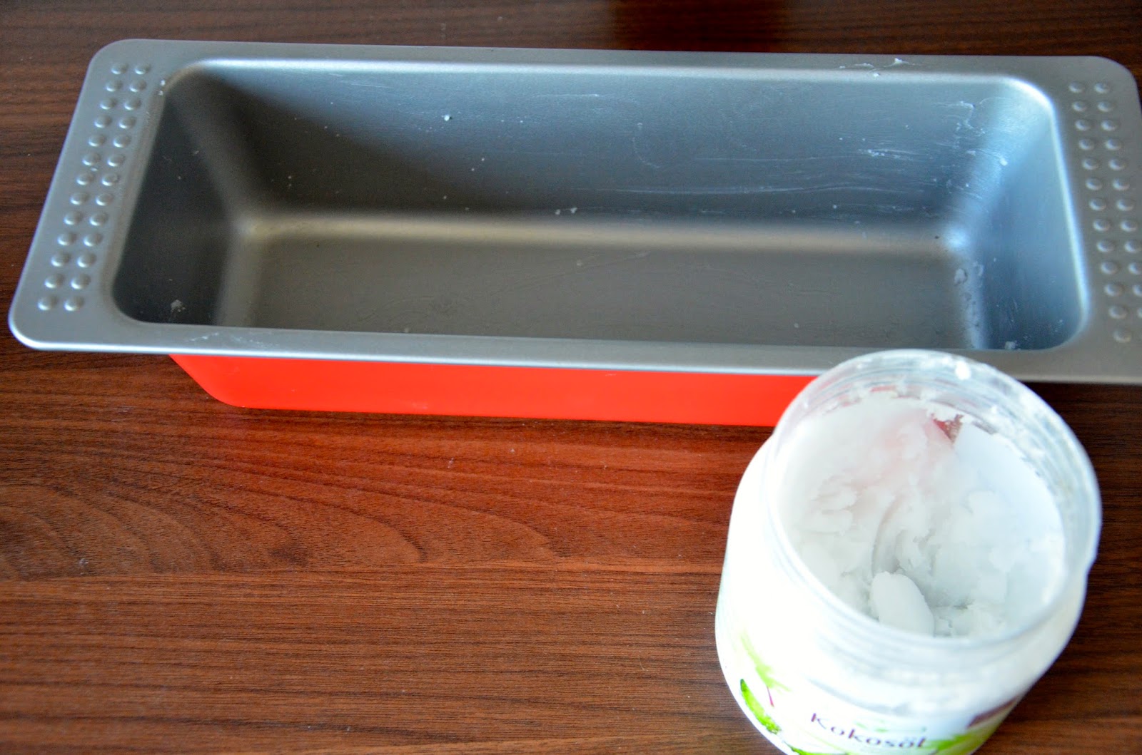 Rozgrzewamy piekarnik do 200 stopni. Smarujemy formę, w której będziemy robić nasze ciasto, olejem kokosowym.