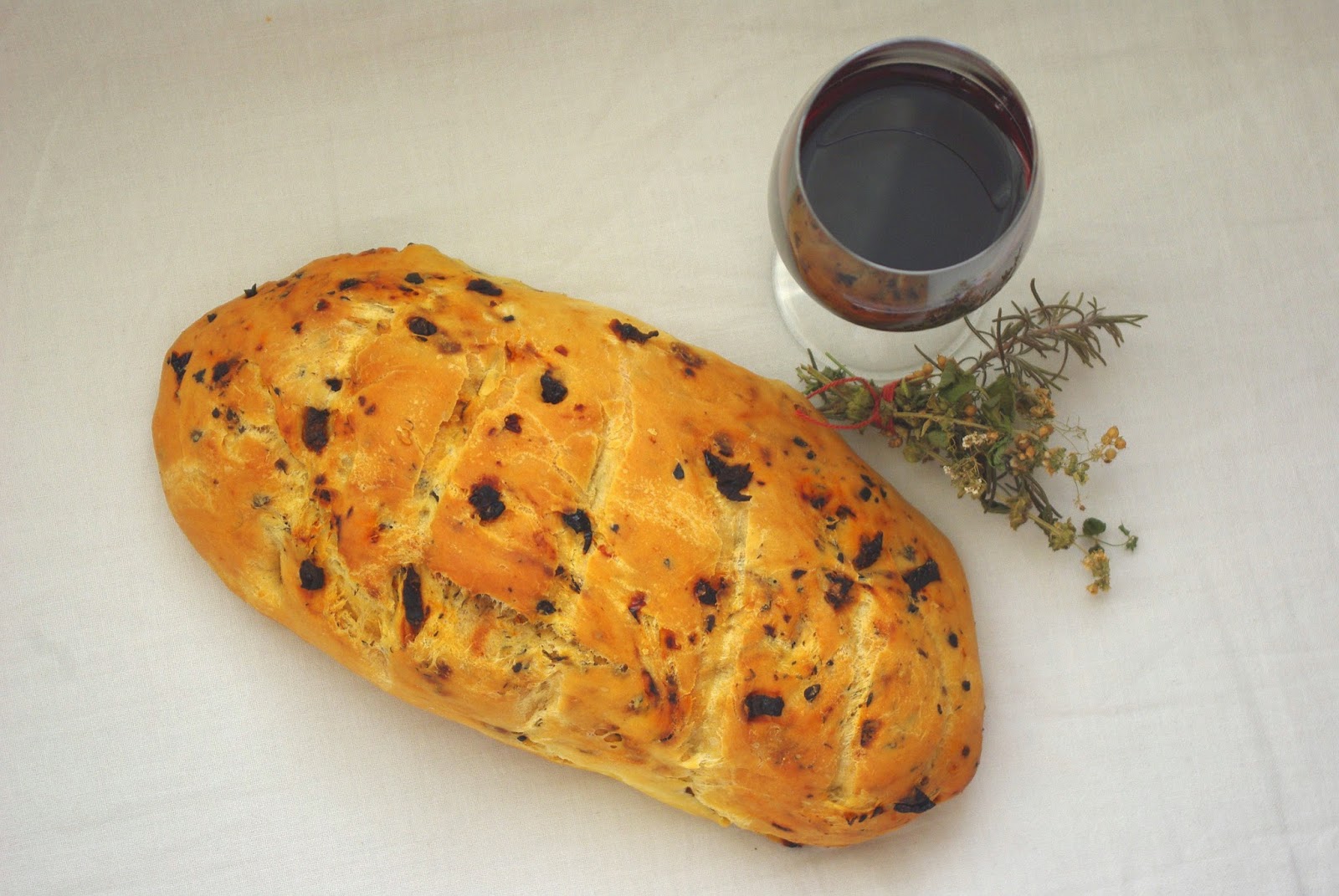 Włoski chleb z oliwkami i suszonymi pomidorami