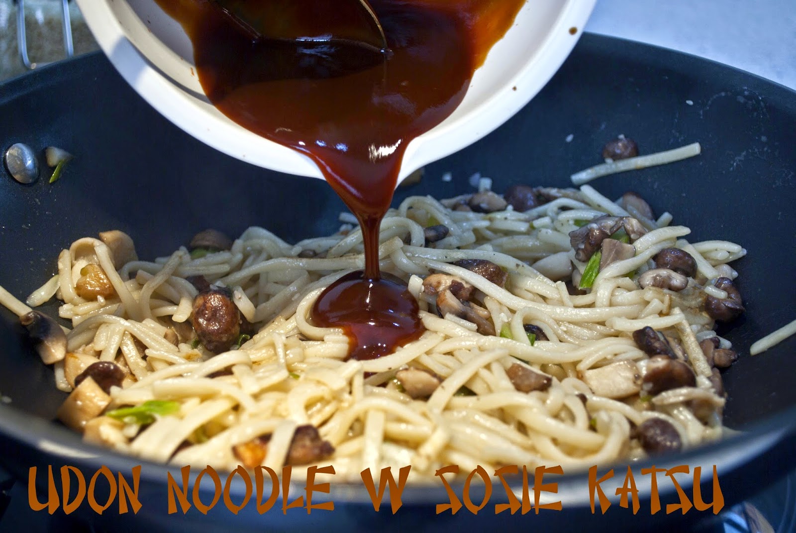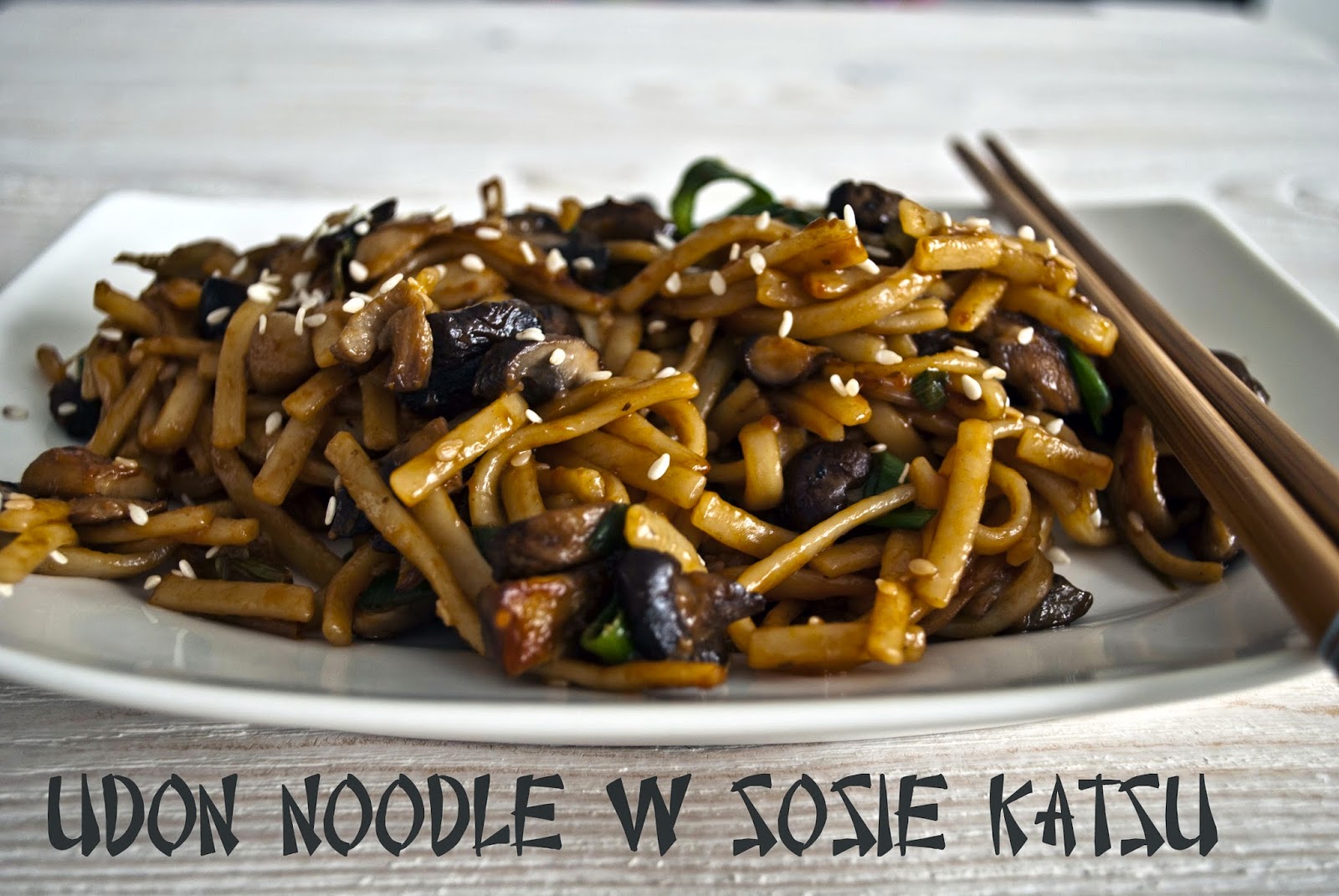 Jednym z takich ciepłych dań które wręcz uwielbiam, są grube pszenne noodle w sosie katsu z różnymi rodzajami grzybów.