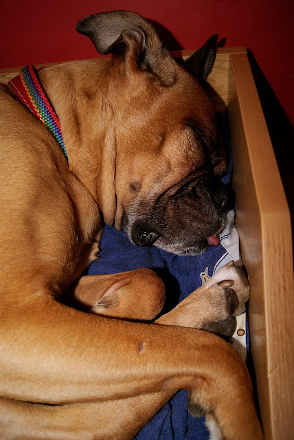 jak na boksera przystało, wieczne dziecko, totalne ADHD i co nas bardzo zaskoczyło, Missi jest nie tylko mniej nerwowa ale łatwiej i szybciej nawiązuje kontakty. Gość w domu nie jest już dla niej intruzem, którego należy obszczekać i przepędzić.