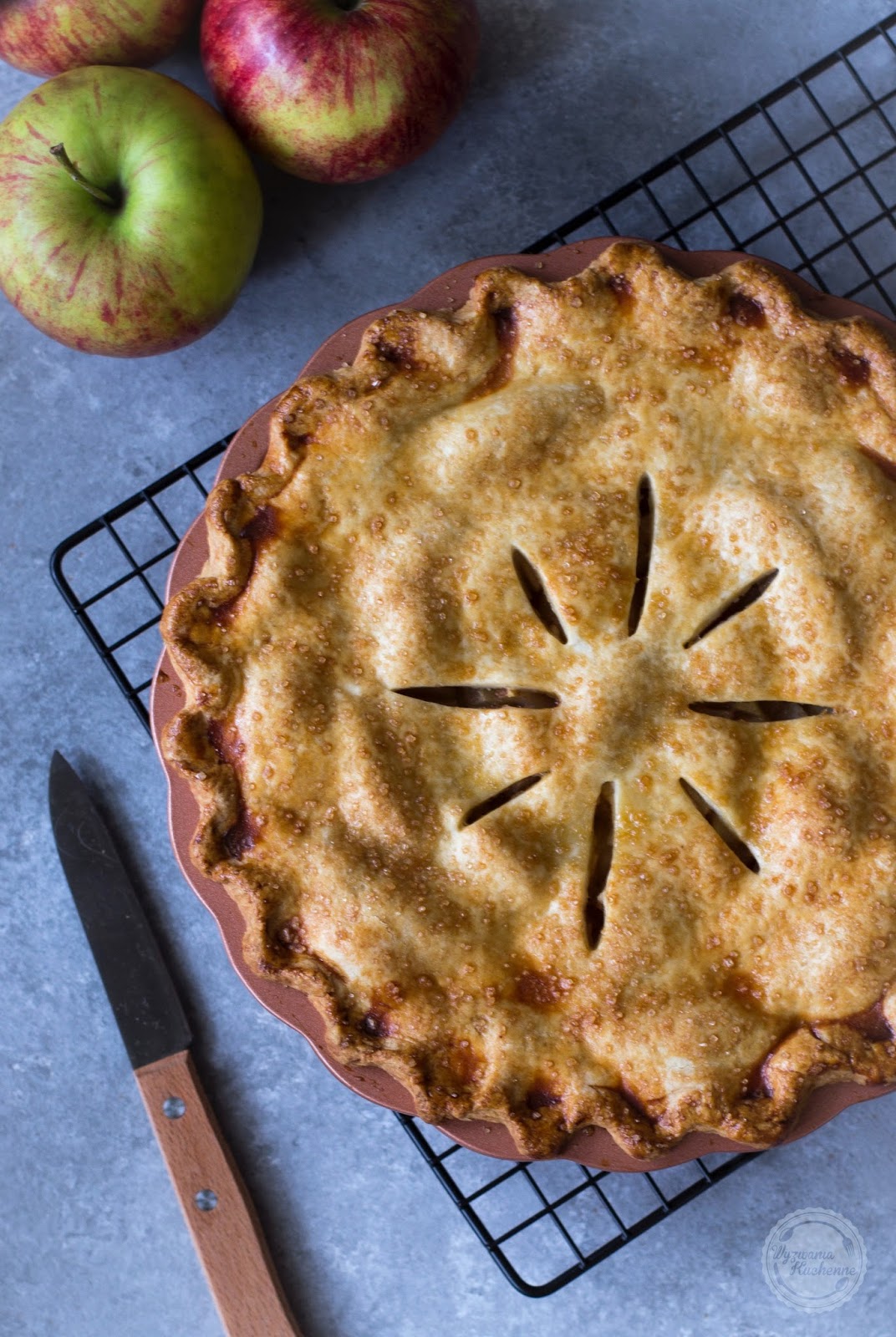 Jeżeli znudziła Wam się chwilowo tradycyjna szarlotka i tarty z jabłkami, a nadal nie wyobrażacie sobie kawy bez jabłkowego wypieku to przepis na słynny tradycyjny Apple Pie sprawdzi się idealnie. Domowa szarlotka po amerykańsku z dwoma warstwami pysznego kruchego-maślanego ciasta, a między nimi lekko kwaskowate jabłkowe nadzienie. Dla mnie najlepsza!