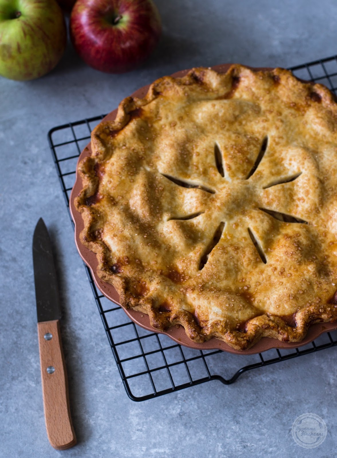 Jeżeli znudziła Wam się chwilowo tradycyjna szarlotka i tarty z jabłkami, a nadal nie wyobrażacie sobie kawy bez jabłkowego wypieku to przepis na słynny tradycyjny Apple Pie sprawdzi się idealnie. Domowa szarlotka po amerykańsku z dwoma warstwami pysznego kruchego-maślanego ciasta, a między nimi lekko kwaskowate jabłkowe nadzienie. Dla mnie najlepsza!