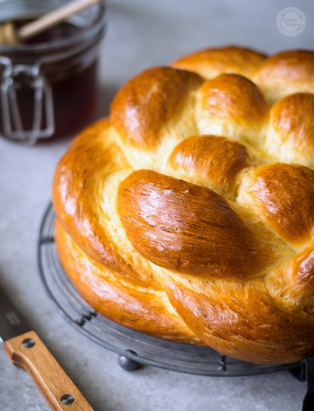 Drożdżowa słodka chałka często pojawia się na naszym stole przy okazji słodkiego śniadania, a przepis z którego zawsze korzystałam już od trzech lat jest na blogu i cieszy się dużym powodzeniem. Tym razem postanowiłam zrobić piękną okrągłą chałkę, bardziej maślaną i mleczną niż tradycyjna. Prezentuje się rewelacyjnie, a smakuje jeszcze lepiej - spróbujcie koniecznie!