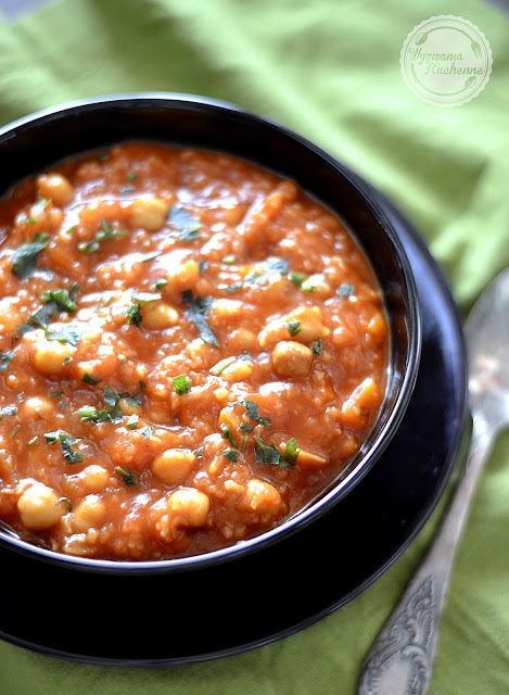 Tradycyjna marokańska zupa w wersji wegetariańskiej, podawana z drobnym makaronem lub ryżem i koniecznie z daktylami. Mocno rozgrzewająca dzięki charakterystycznym przyprawom.