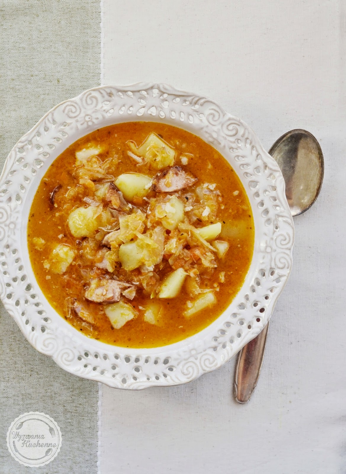 Tradycyjna polska zupa z kiszonej kapusty i warzyw gotowana na wywarze z żeberek wieprzowych. Bardzo sycąca i pożywna, podawana samodzielnie lub z pieczywem.