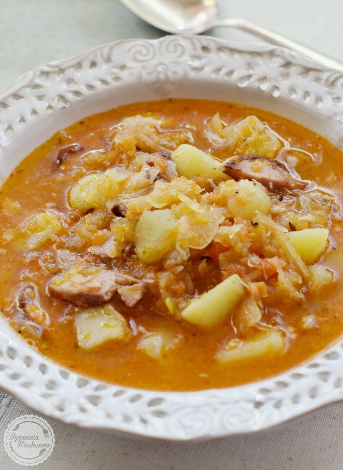 Tradycyjna polska zupa z kiszonej kapusty i warzyw gotowana na wywarze z żeberek wieprzowych. Bardzo sycąca i pożywna, podawana samodzielnie lub z pieczywem.