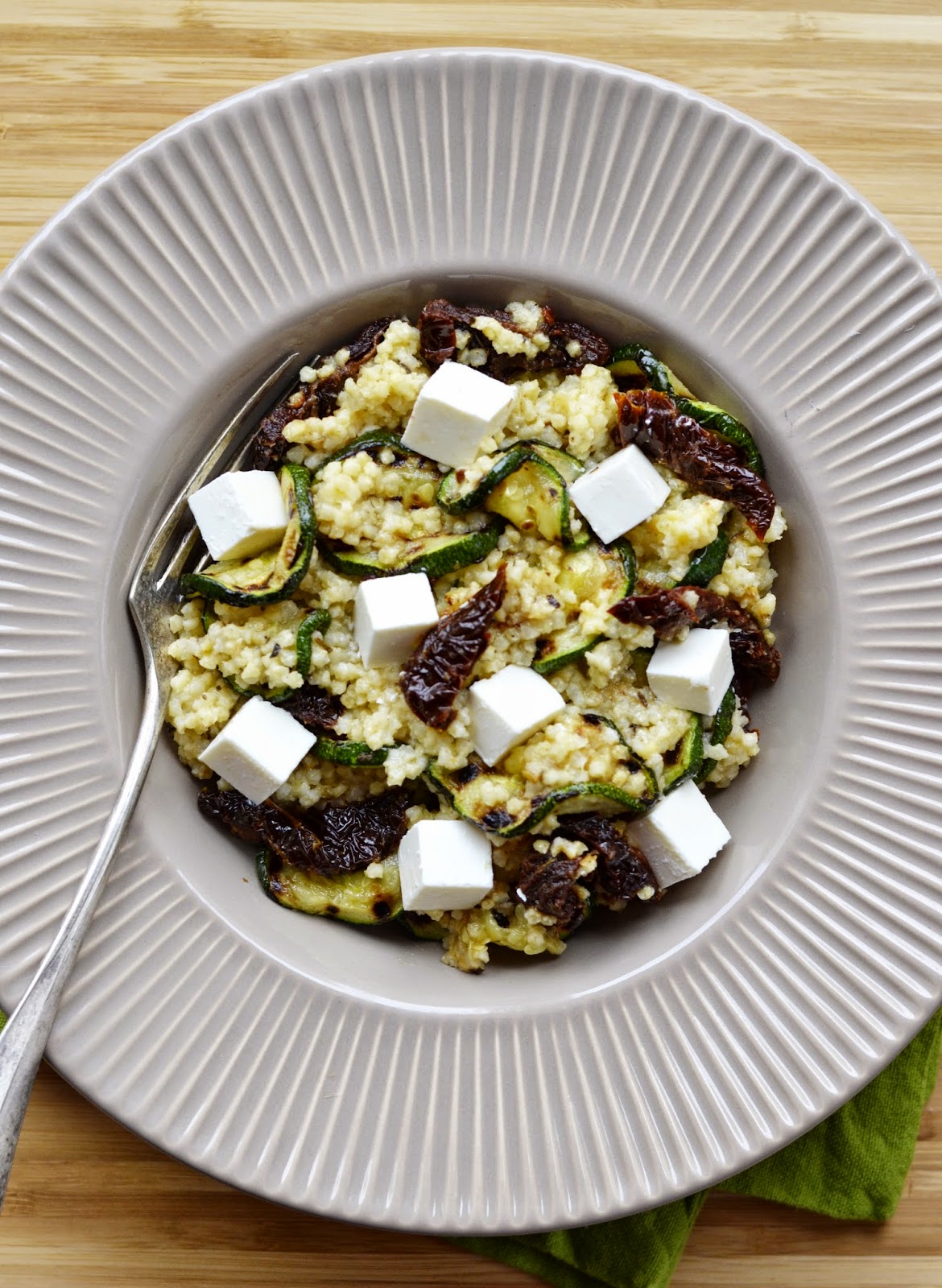 Błyskawiczne sycące danie z kaszą jaglaną, grillowaną cukinią i serem feta podawane na ciepło lub na zimno.