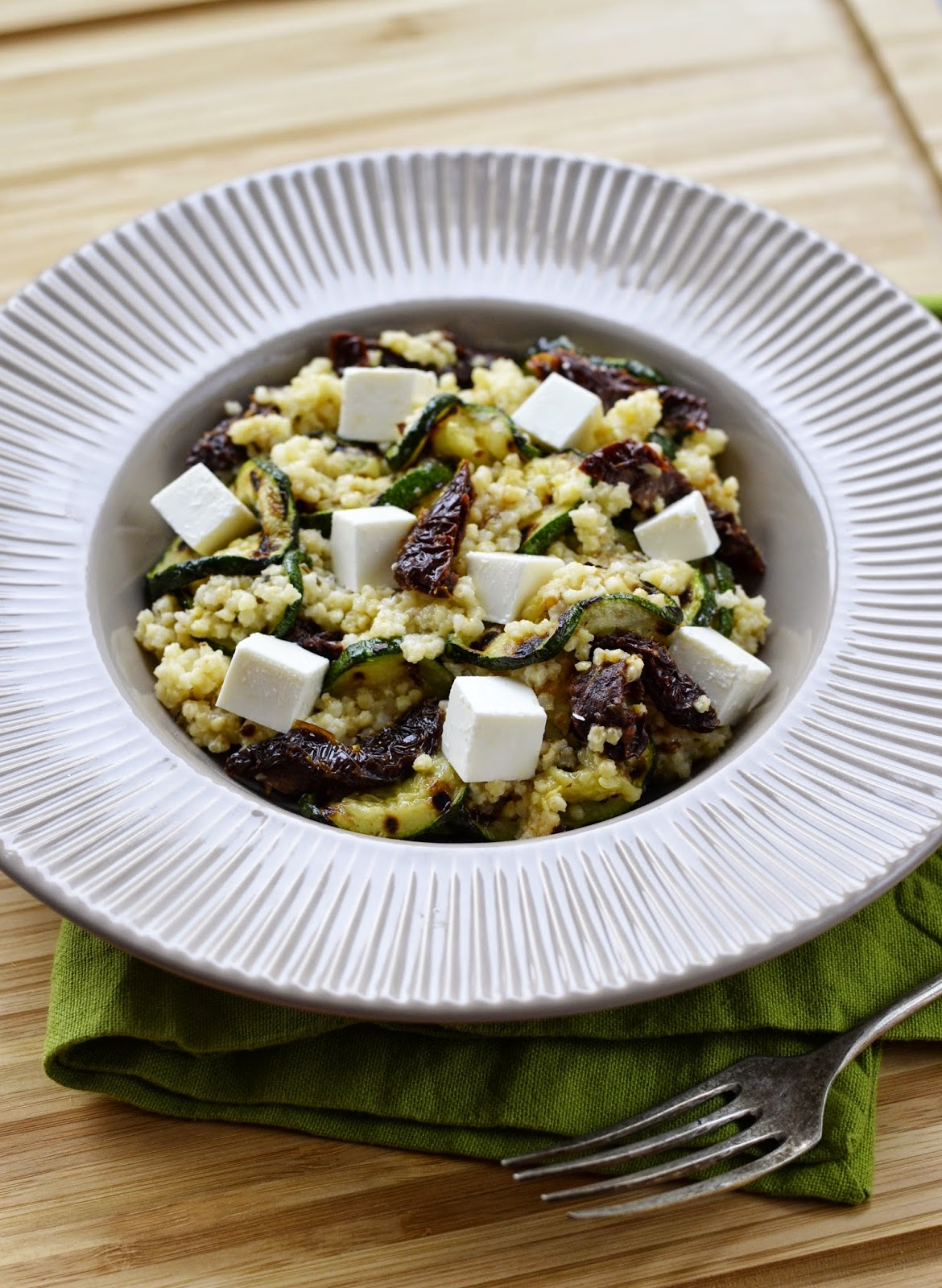 Błyskawiczne sycące danie z kaszą jaglaną, grillowaną cukinią i serem feta podawane na ciepło lub na zimno.