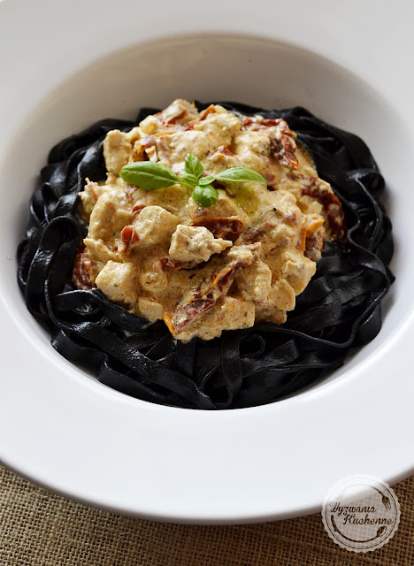 Tagliatelle z suszonymi pomidorami i kurczakiem.