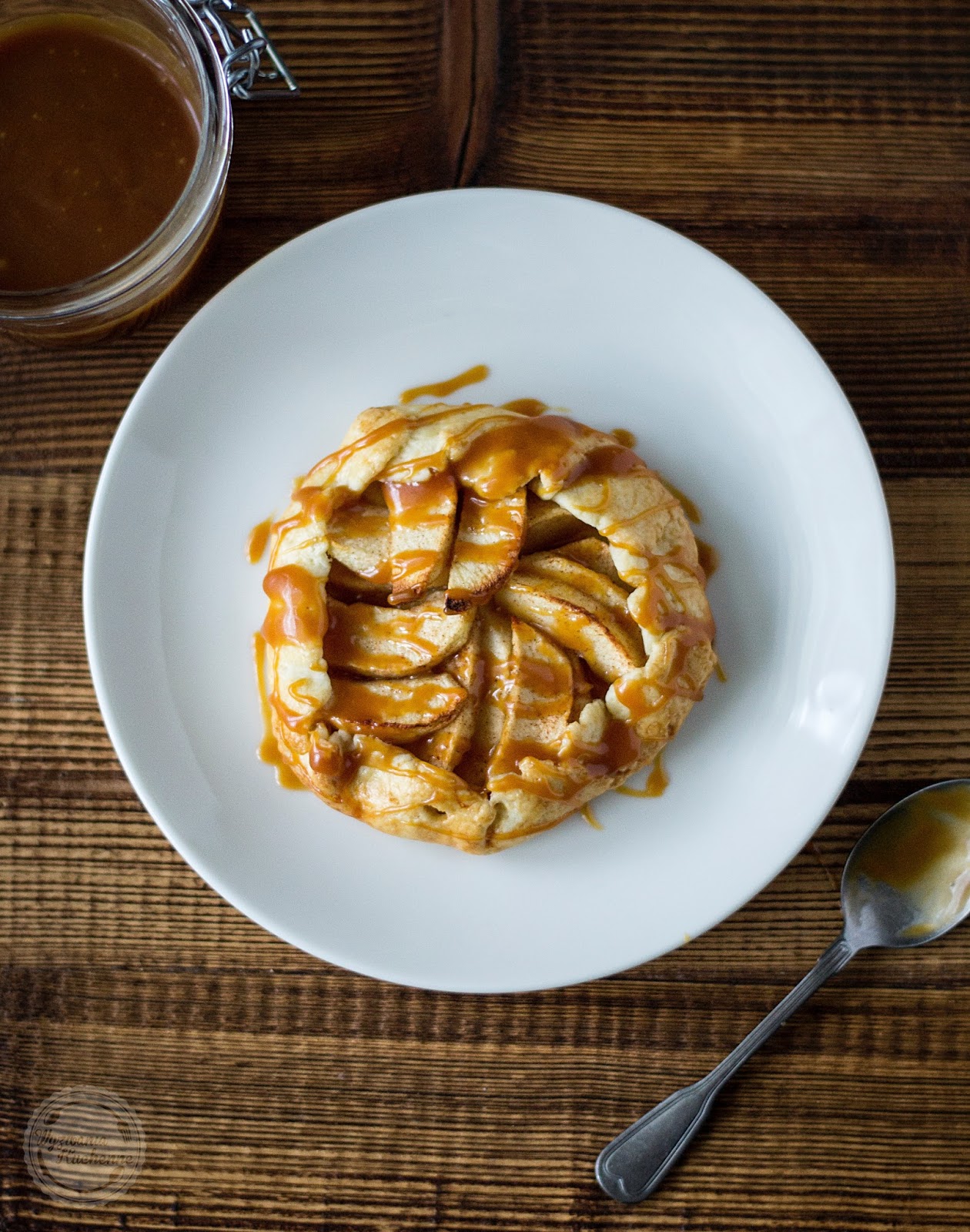Rustykalne tarty to chyba moje ulubione ciasta, zwłaszcza że nie potrzeba do nich żanej formy, wystarczy jedynie duża blaszka. Po orkiszowej galette ze śliwkami naszła mnie ochota na mini tarty w wersji z jabłkami i cynamonem. Do tego niedawno odkryty przeze mnie domowy solony karmel i mamy deser jak z najsmaczniejszej cukierni, a nawet powiedziałabym że o niebo lepszy...