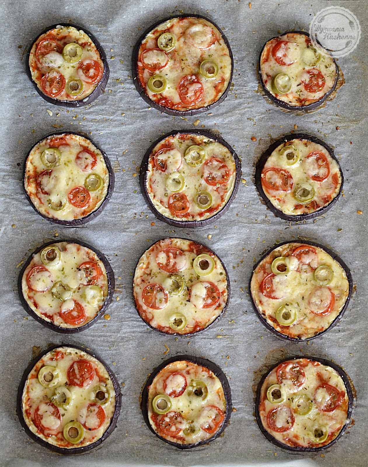 Ekspresowe i dietetyczne mini pizze, których spód to zapiekane plastry bakłażana, a na nich dodatki wedle uznania. Smaczna kolorowa przekąska na każdą okazje.