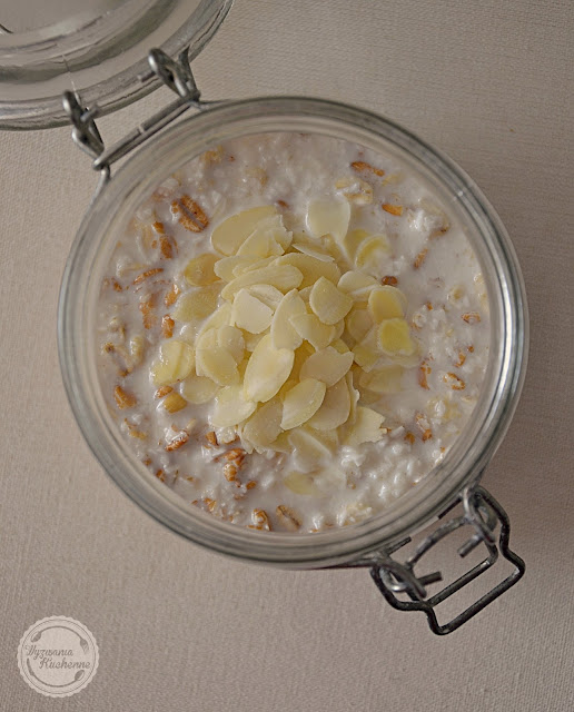 - Przed zjedzeniem posypać płatkami migdałowymi.