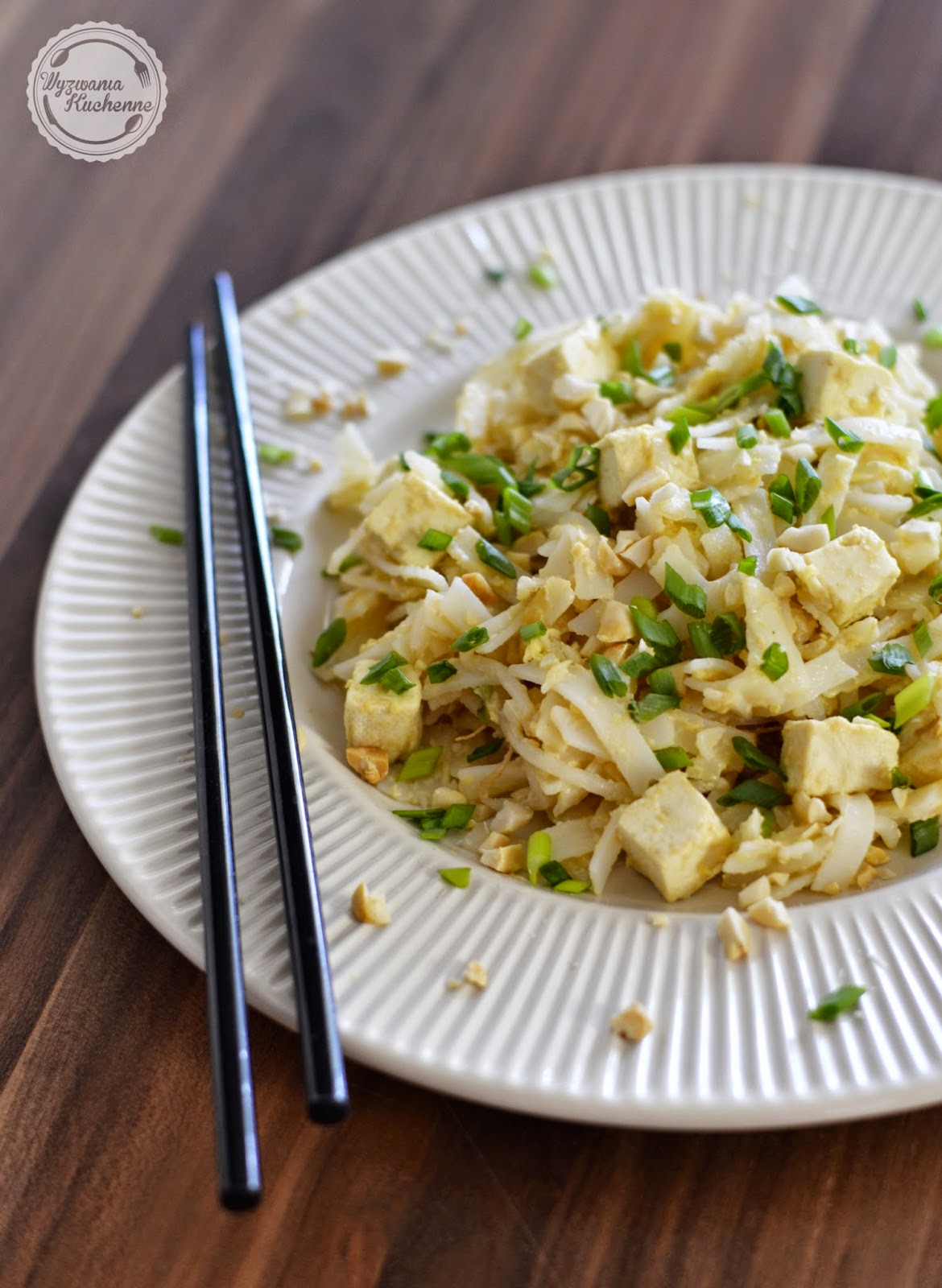 Tajskie smaki :) Smażony w woku makaron ryżowy z jajkiem, kiełkami i orzeszkami ziemnymi. Charakteru nadaje mu specyficzna pasta tamaryndowa. Moja wersja jest z serem tofu, który z powodzeniem można zastąpić kurczakiem lub krewetkami.