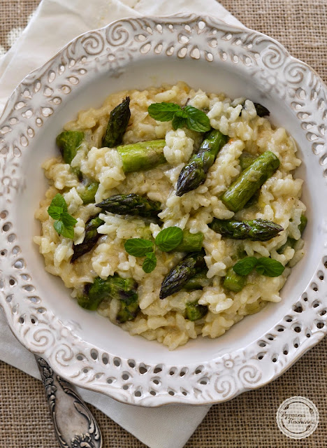 Sycące i pyszne włoskie risotto z duszonymi na maśle zielonymi szparagami i białym winem. Jeden z najsmaczniejszych i wbrew pozorom mało skomplikowany pomysł na szparagi.