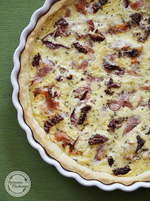 Kolejna wytrawna tarta... Tym razem z kruchego ciasta z włoskimi składnikami - szynka parmeńską, mozarellą i suszonymi pomidorami.