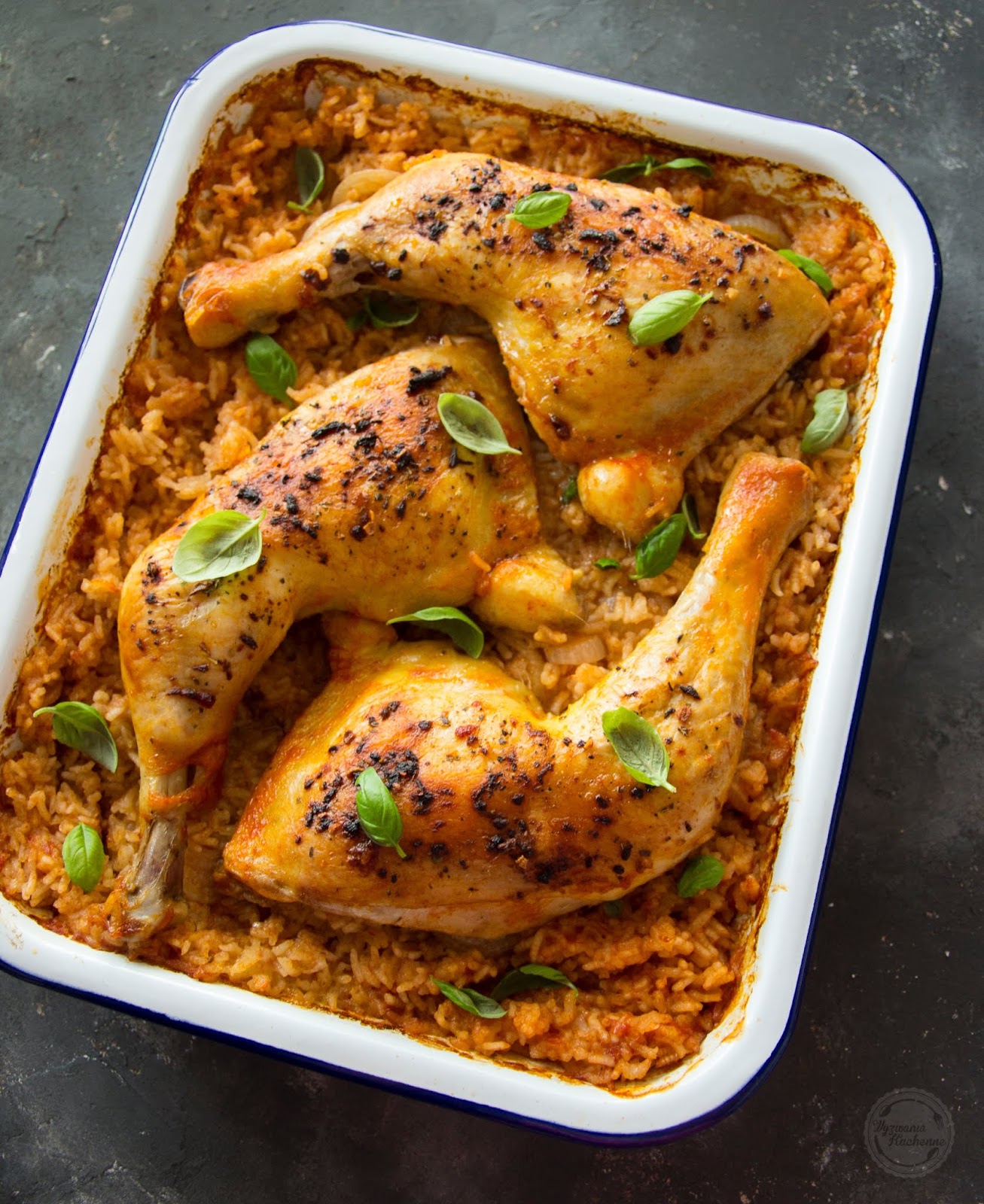 Uwielbiam jednogarnkowe obiady, które praktycznie robią się same, a do tego smakują zarówno dorosłym jak i dzieciom. I taki właśnie jest pomysł na udka z kurczaka, które doprawiamy i pieczemy w piekarniku ułożone na surowym ryżu. Dzięki pomidorowej zalewie ryż się gotuje i nabiera odpowiedniej konsystencji. Nie trzeba mieszać ani obracać, więc spokojnie możemy przez godzinę o nich zapomnieć. A potem zajadać ze smakiem :)