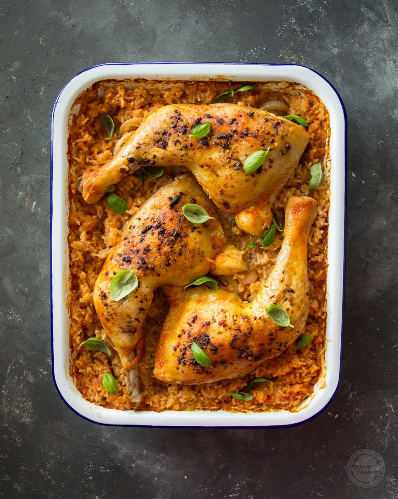 Uwielbiam jednogarnkowe obiady, które praktycznie robią się same, a do tego smakują zarówno dorosłym jak i dzieciom. I taki właśnie jest pomysł na udka z kurczaka, które doprawiamy i pieczemy w piekarniku ułożone na surowym ryżu. Dzięki pomidorowej zalewie ryż się gotuje i nabiera odpowiedniej konsystencji. Nie trzeba mieszać ani obracać, więc spokojnie możemy przez godzinę o nich zapomnieć. A potem zajadać ze smakiem :)