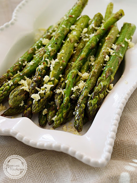 - Usmażone szparagi posypać serem i podawać na ciepło lub zimno.