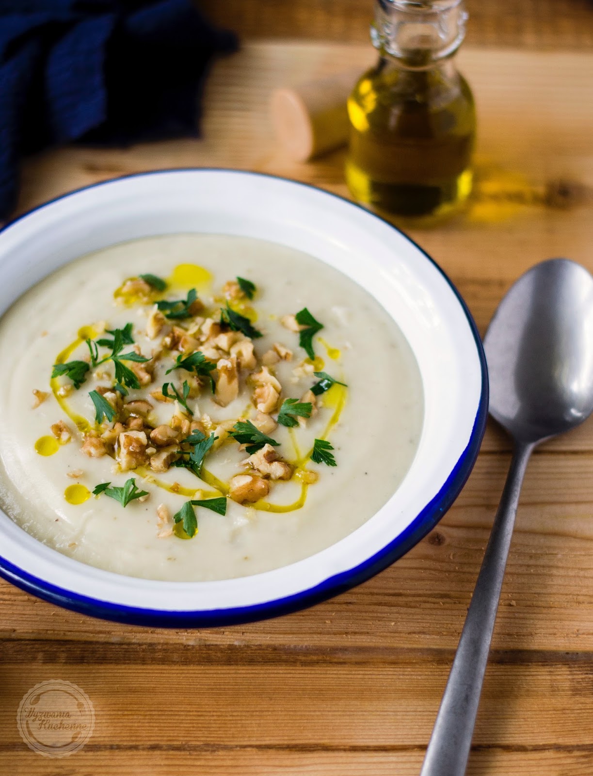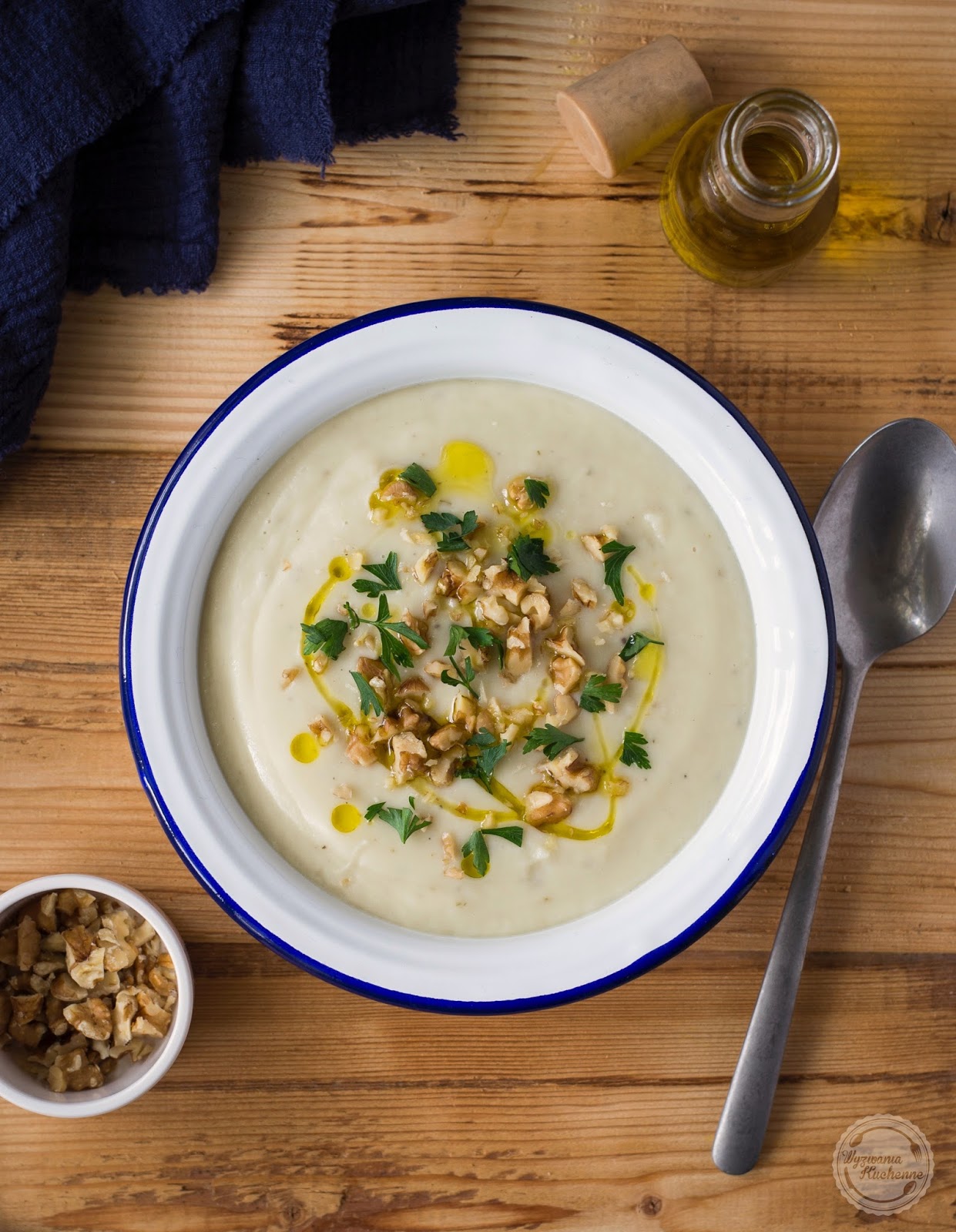- Przelać na talerze, skropić oliwą i udekorować orzechami oraz posiekaną natką pietruszki.
