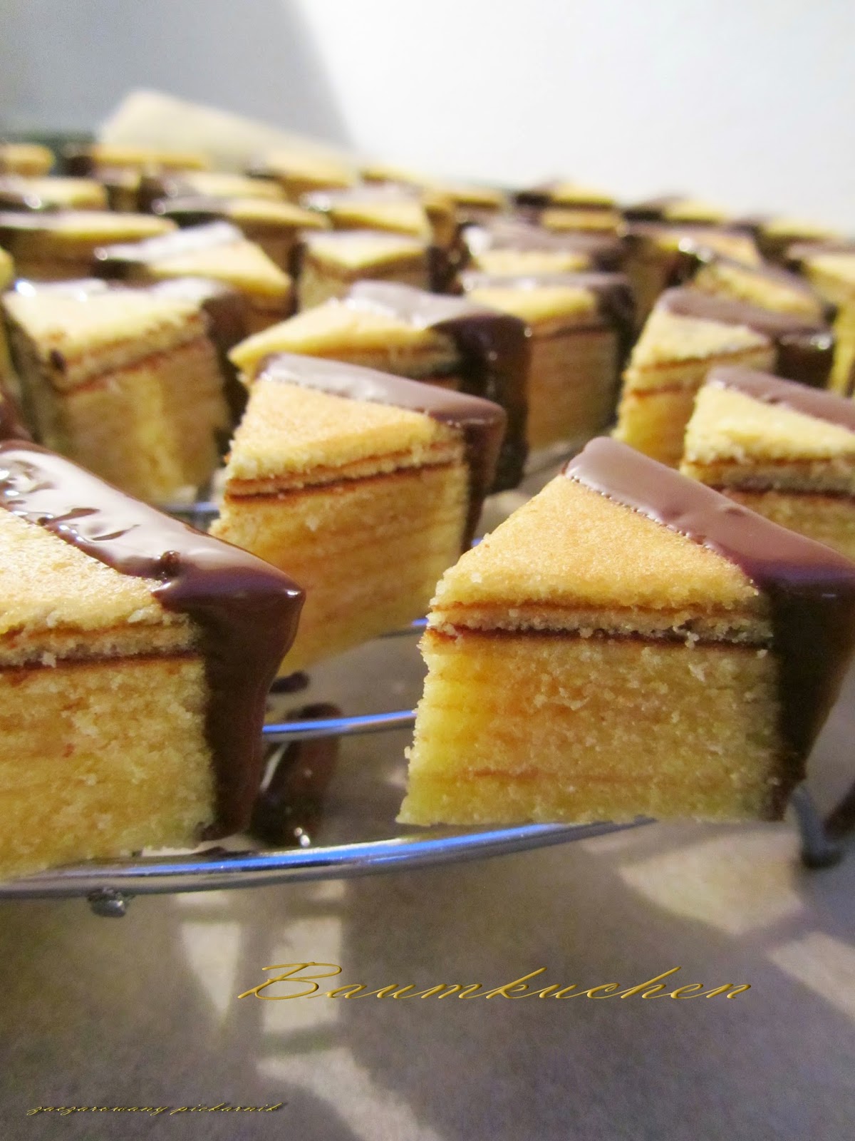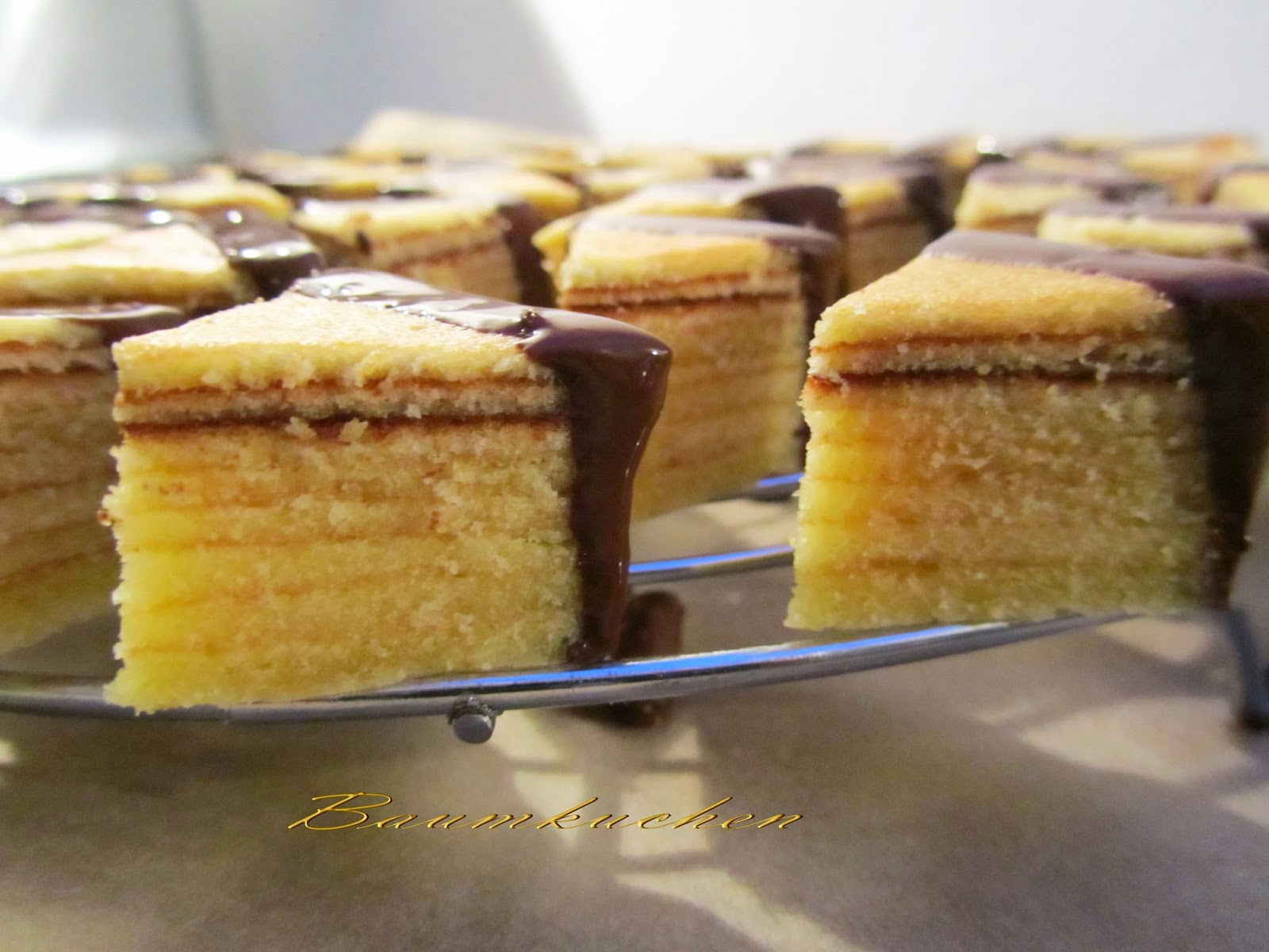 Dzisiaj mam dla Was chyba już ostatni świąteczny przepis. Tradycyjny specjał bożonarodzeniowy pochodzący z wschodnich Niemiec – Baumkuchen, czyli coś w rodzaju polskiego sękacza. Znalazłam stary tradycyjny przepis dostosowany do współczesnych warunków i nie mogłam się mu oprzeć. Wyszło pyszne, wilgotne i odpowiednio słodkie. Przepis może wydać się Wam pracochłonny, ale poza lekko uciążliwym pieczeniem jest bardzo łatwy do wykonania.