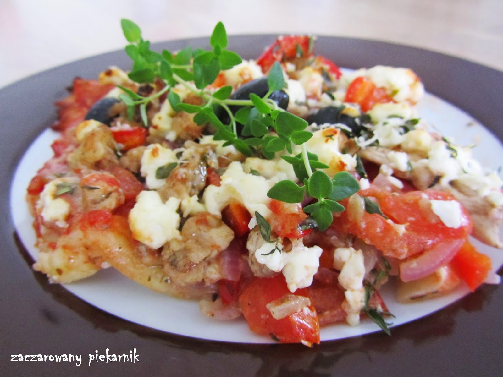 tam Was po dłuższej przerwie, spowodowanej wyjazdem i kłopotami technicznymi ze zmianą laptopa, na którym do tej pory pracowałam. Wszystko niestety trwało nieco dłużej, niż przewidywałam, ale w końcu się udało. Jestem z nowymi pomysłami nie tylko na słodkości, ale także wytrawne wypieki. Dzisiaj właśnie jeden z takich wypieków – sycąca, pachnąca latem w Grecji pizza gyros. Na chrupiącym drożdżowym cieście klasyczne greckie dodatki: feta, oliwki, papryka...Składniki na około 8 – 10 osób: