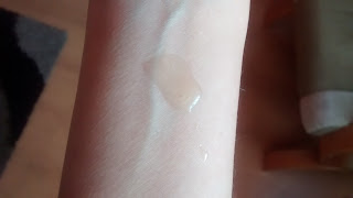 pozostawia po sobie fajną powłoczkę. Ja zawsze używam go wieczorem przed snem, po kilkunastu minutach spokojnie można założyć piżamę bez obaw, że się poplami. Jednak dla pewności nie zakładałabym najdroższych atłasów.