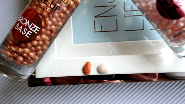 Pierwsza z nich jest bazą bronzującą. Kolor kuleczek to kolor złocistego brązu. Baza bronzująca ma za zadanie nadawać lekko brązowy ton cerze. Może być stosowana pod makijaż bądź jako produkt bezpośrednio brązujący bez makijażu.