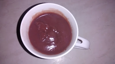 Przyrządzony produkt:Kakao w kolorze ziemnisto-brązowym. Nie ma jakoś przyjemnnego nadwyraz wyglądu.