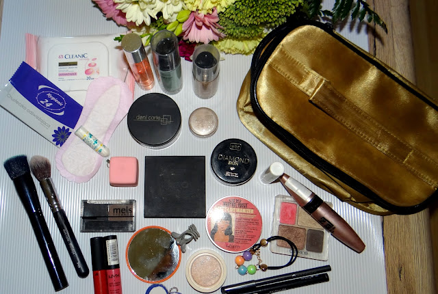 pedzlem do bronzera i rozświetlacza to pędzel Prestige od Deni Carte. W mojej kosmetyczce znaleźć można pierdołki i przybory higieniczne:)