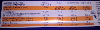 Wartości odżywcze: Wartość odżywcza | W 100 g | W porcji producenta (25 g) | W 1 kostce (17 g) |