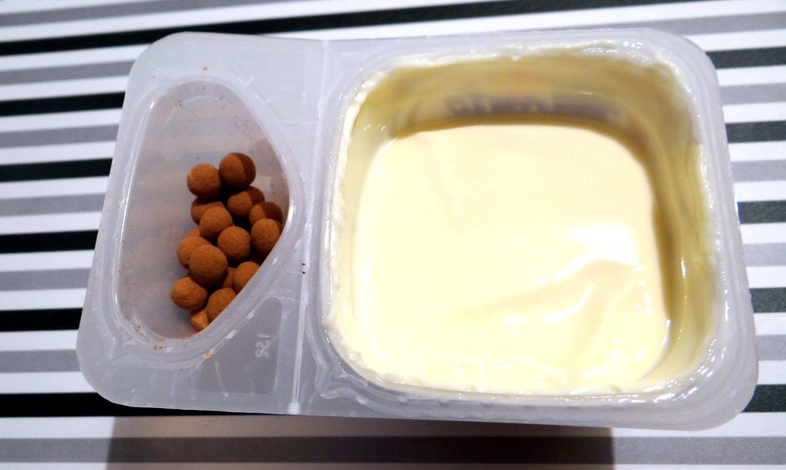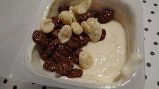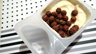 nie zmieniają one swojej struktury nadal pozostaja chrupkie a czekolada się nie rozpuszcza w kremie.Mamy więc deser i zatopione w nim chrupiące kulki, które fundują ciekawe doznanie smaku, ale całość jest mega słodka.