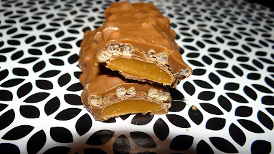 Przekrój zupełnie nie przypomina znanych cukierków. Ba, nawet karmel jest inny całkowicie. Czekolada bardziej twarda, a karmel? Całkowicie inny. W cukierkach był ciągnący się i lekko upłynniony tu w bardzo stałej postaci.