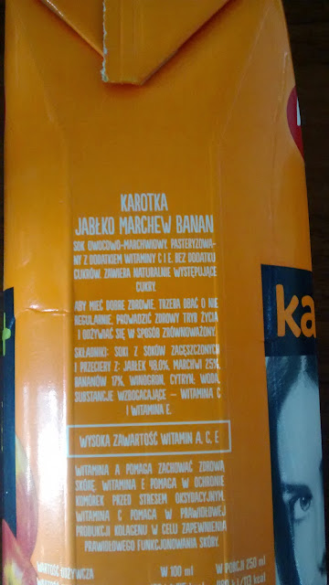 Kolorystycznie utrzymany w pomarańczowej barwie nawiązujący do nazwy produktu Karotka.Opakowanie zadrukowane jest przeróżnymi rodzajami czcionek, co może jest i fajne, ale z drugiej strony trochę wprowadza konsumenta w rozkojarzenie i docierają do nas raczej wybiórcze informacje.