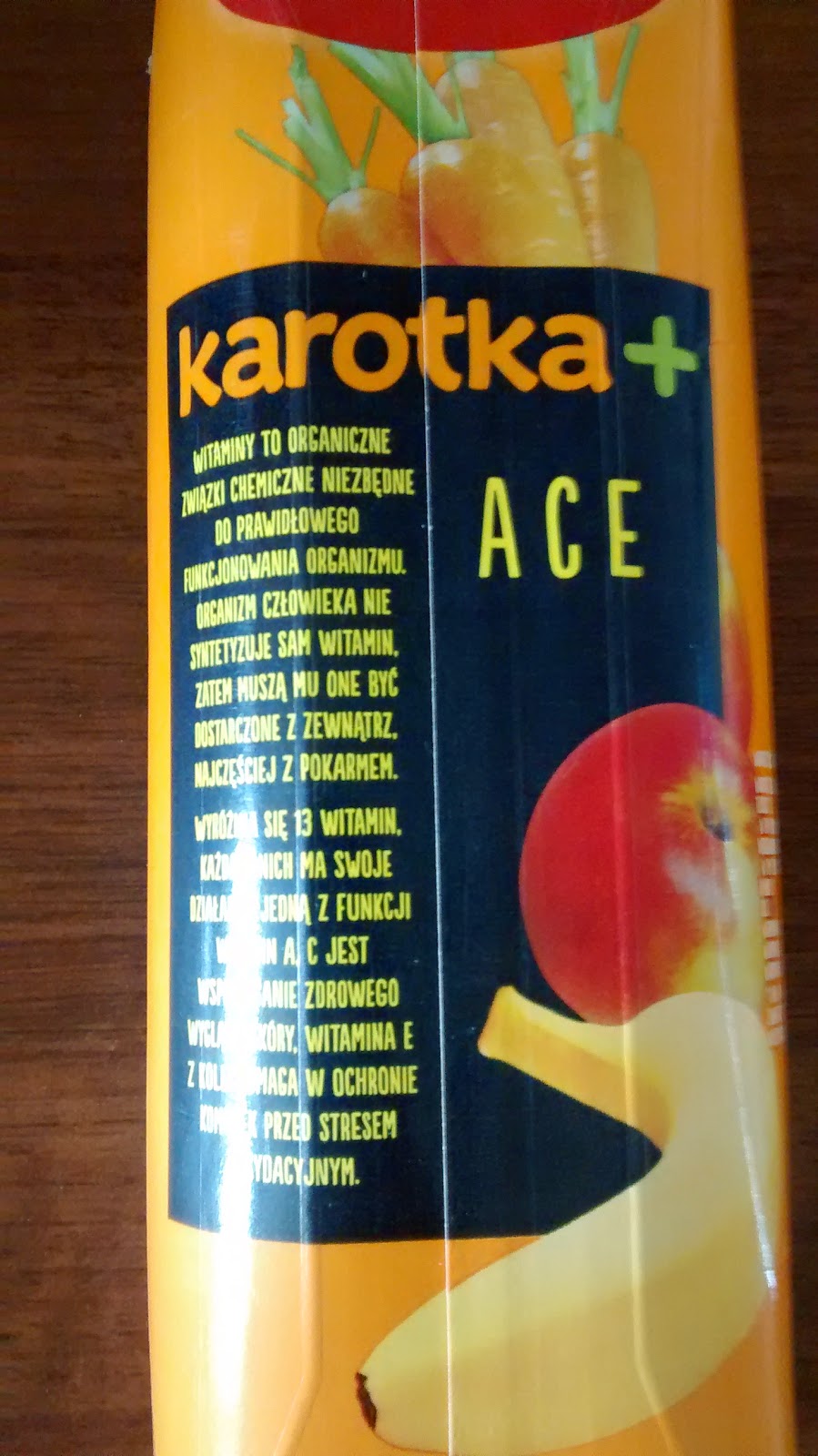 Soki Karotka PLUS to linia nowych soków z dodatkiem funkcjonalnego składnika (tu witamin A,C,E) i bez dodatku cukru.