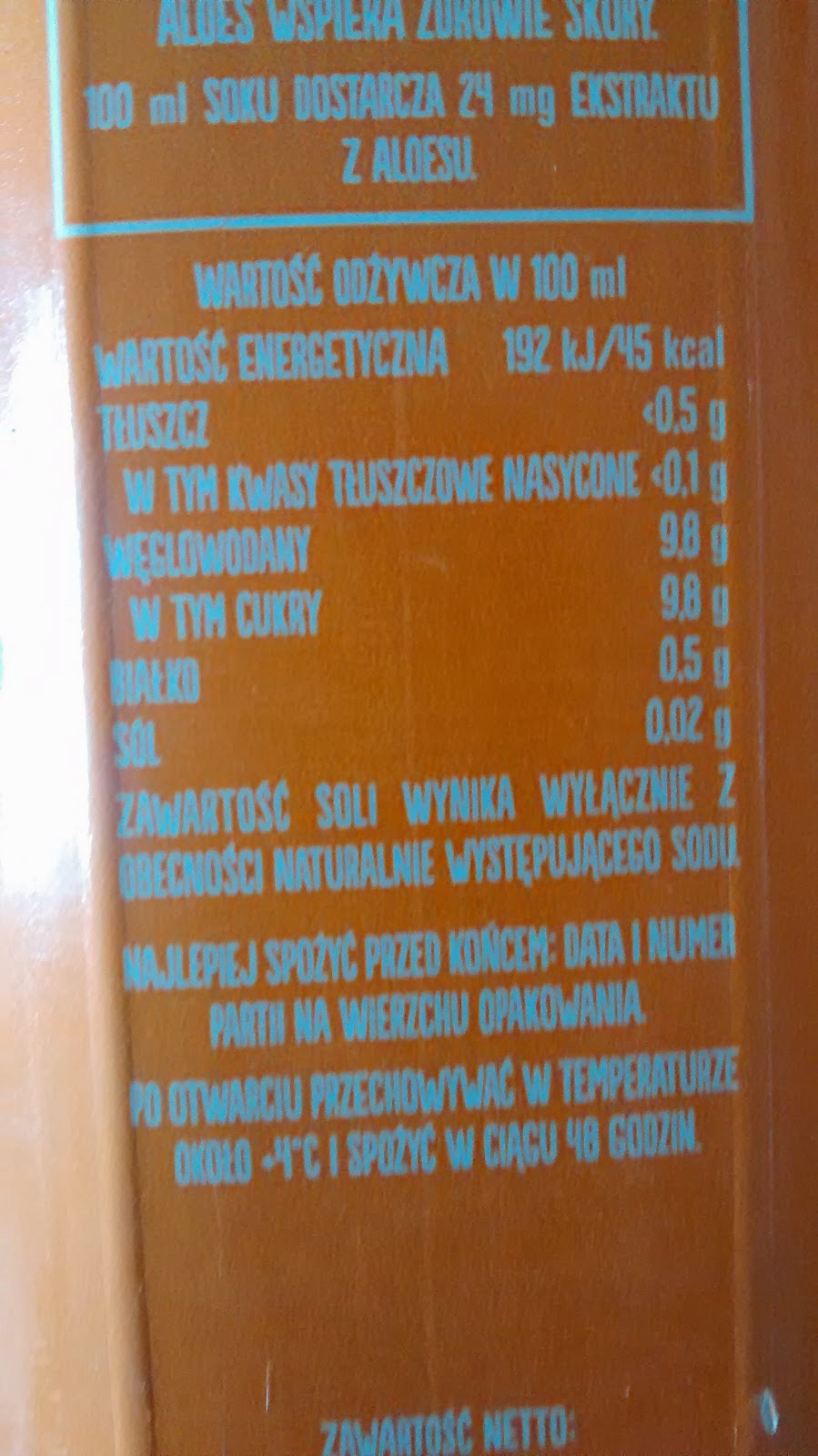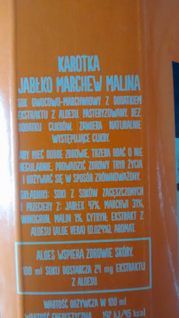 Sok owocowo-marchwiowy z dodatkiem ekstraktu z aloesu pasteryzowany bez dodatku cukru
