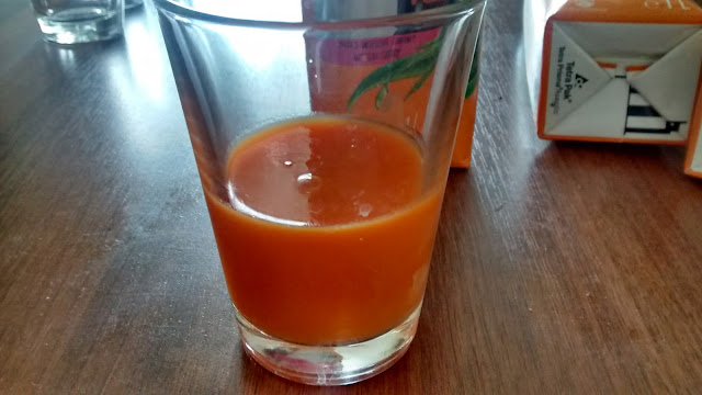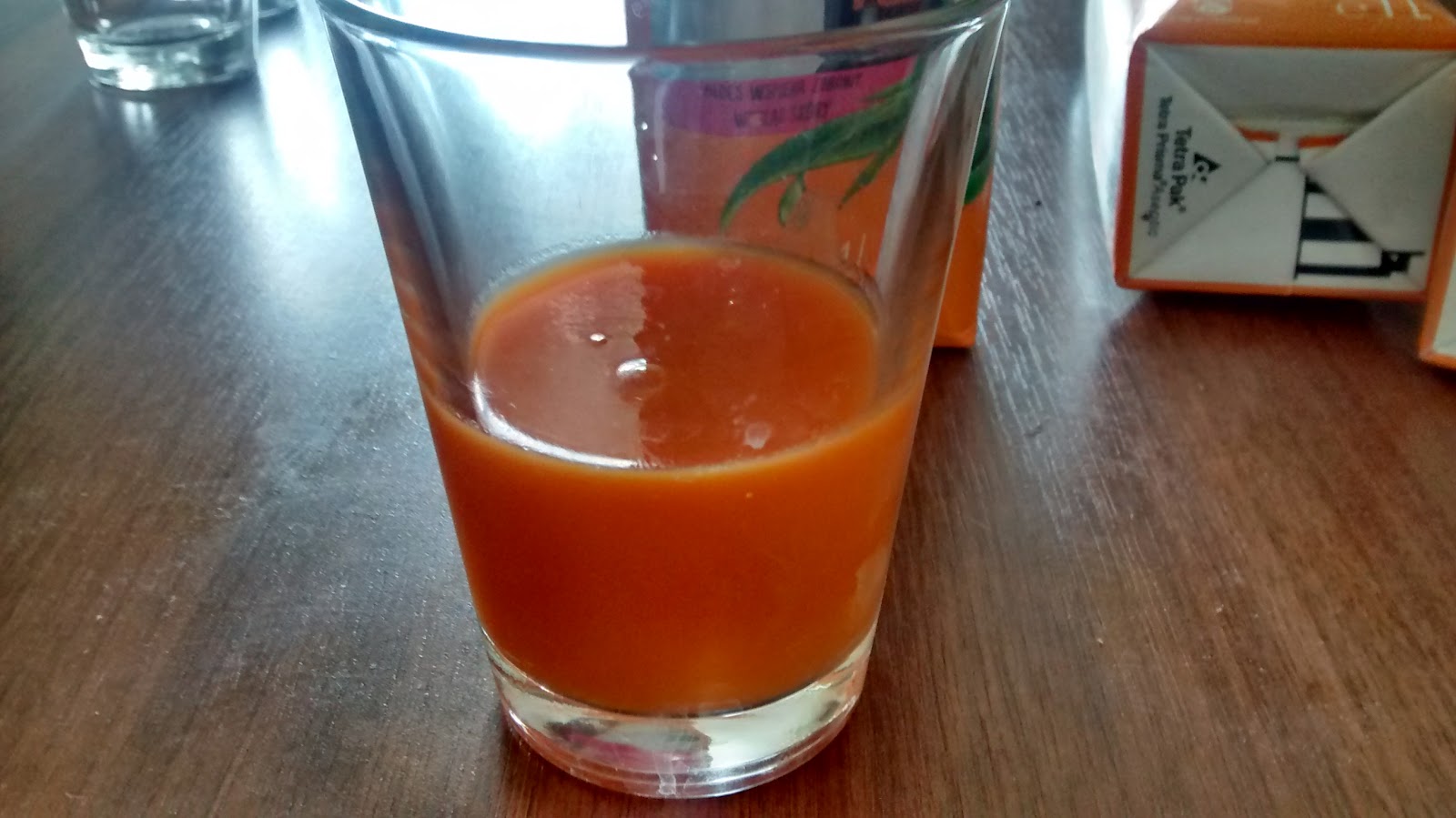 sok ma kolor pomarańczowy o gęstej konsystencji ma przyjemną barwę