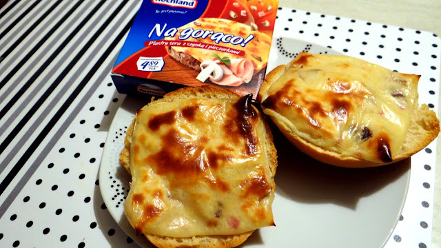 Hochland, Na gorąco - plastry sera z szynką i pieczarkami.