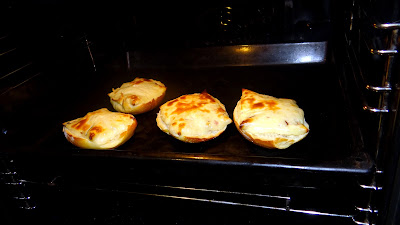 10 minut w temperaturze 180*CSer podczas zapiekania zdecydowanie się podnosi i napowietrza. Na jego powierzchni tworzą się pęcherze. Nie mogę powiedzieć, że uzyskałyśmy efekt stopionego sera, ale w sumie taki nadmuchany lekko przyrumieniony miękki w środku i chrupiący z zewnątrz też nam odpowiadał.