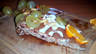 * winogrono, mandarynka, fisztaszki, serek Almette wiśniowo-żurawinowy i polewa z Czekotubki :)