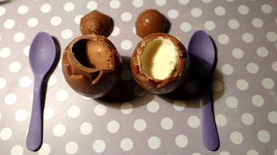 w ciemnej wersji jest pyszny mocno czekoladowy zapach a w jasnej kremowo-mleczny z nutką wanilii. Oba jajka są