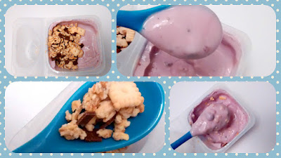 Jogurt ma przyjemny zapach, naprawdę zniewalający. Przywodzi mi na myśl konfiturę z jagód, którą ciocia obdarowywała nas jak byliśmy mali z zaleceniem by jeść wtedy gdy boli brzuch. Kocham ten zapach i nie wiem dlaczego jagody są dla mnie takim fenomenem.