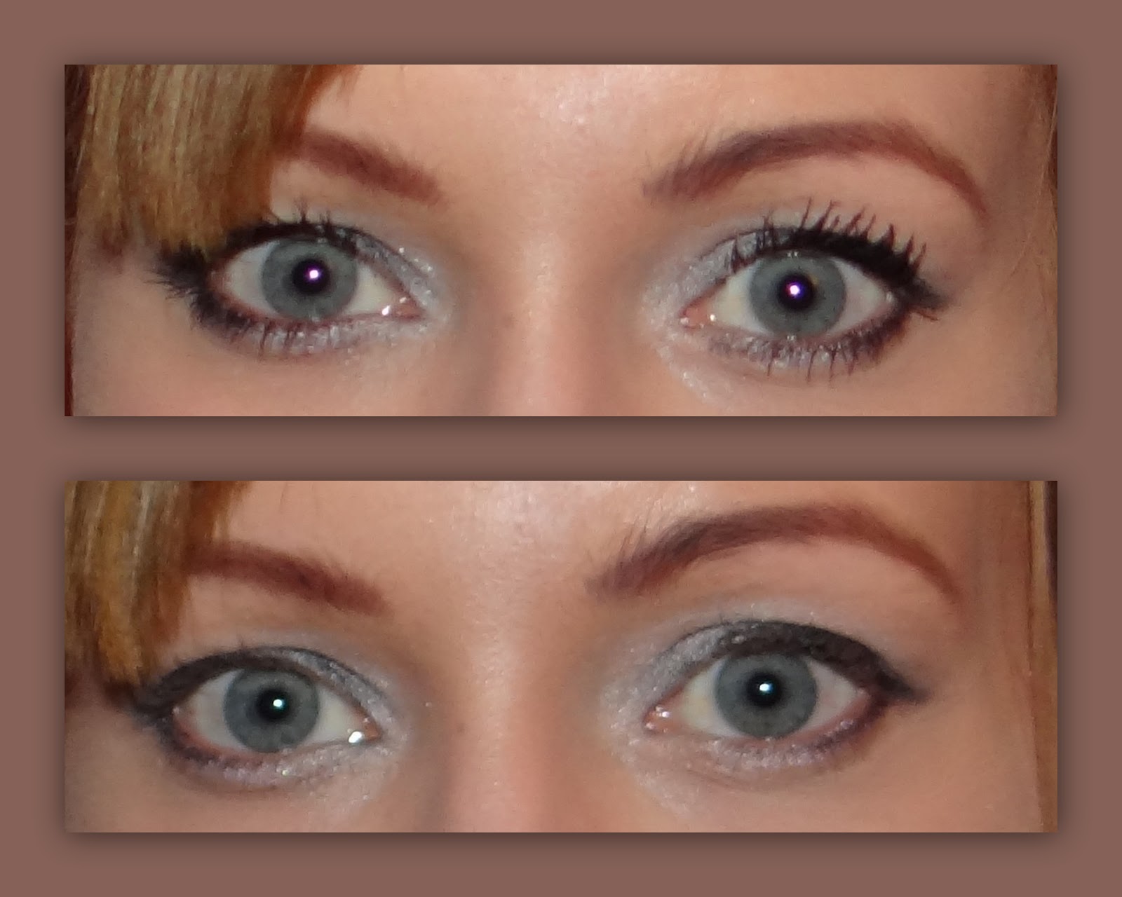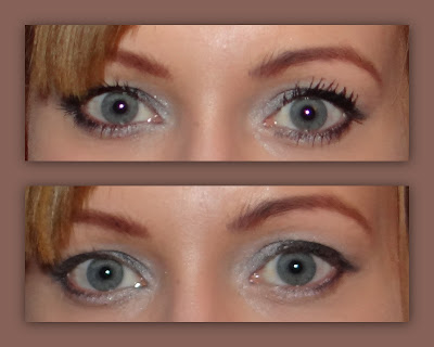 Upsss... teraz zauważyłam, że na pierwszym zdjęciu u góry znajduje się foto wytuszowanych rzęs a na dole nie. Natomiast na drugim zdjęciu zupełnie odwrotnie :P